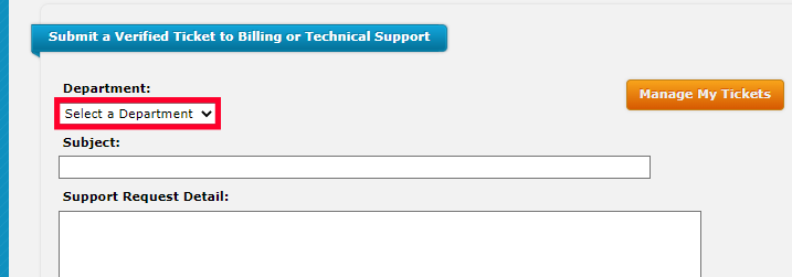 Click the dropdown menu and select a Department. Options are Billing and Technical Support.