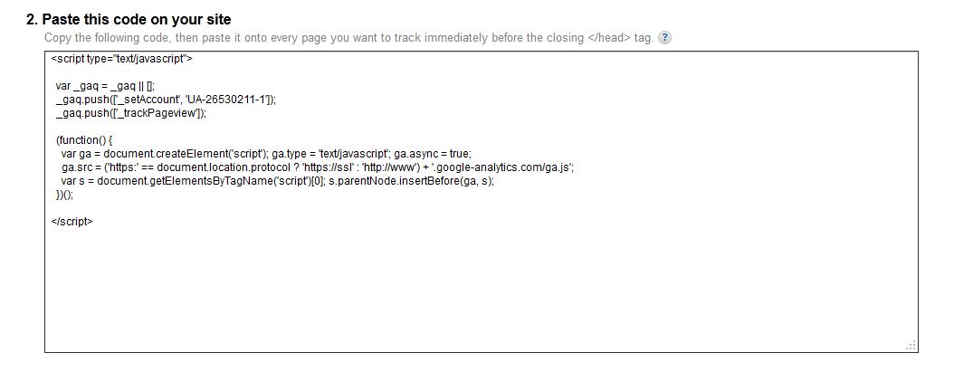 Scrolling down, in Step 2 you'll see code to be copied and pasted into your site's files.