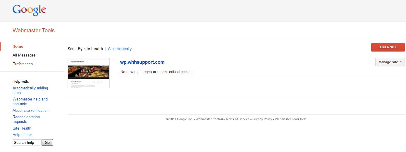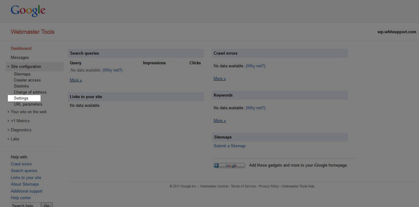 - In the home page, select your site. If you have more than one site, select the site you want to change the crawl rate for.