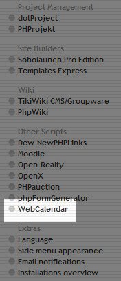 First, log into your account cPanel and navigate to Fantastico de Luxe. Once you have clicked on Fantastico, click on "WebCalendar" under the "Other Scripts" section: