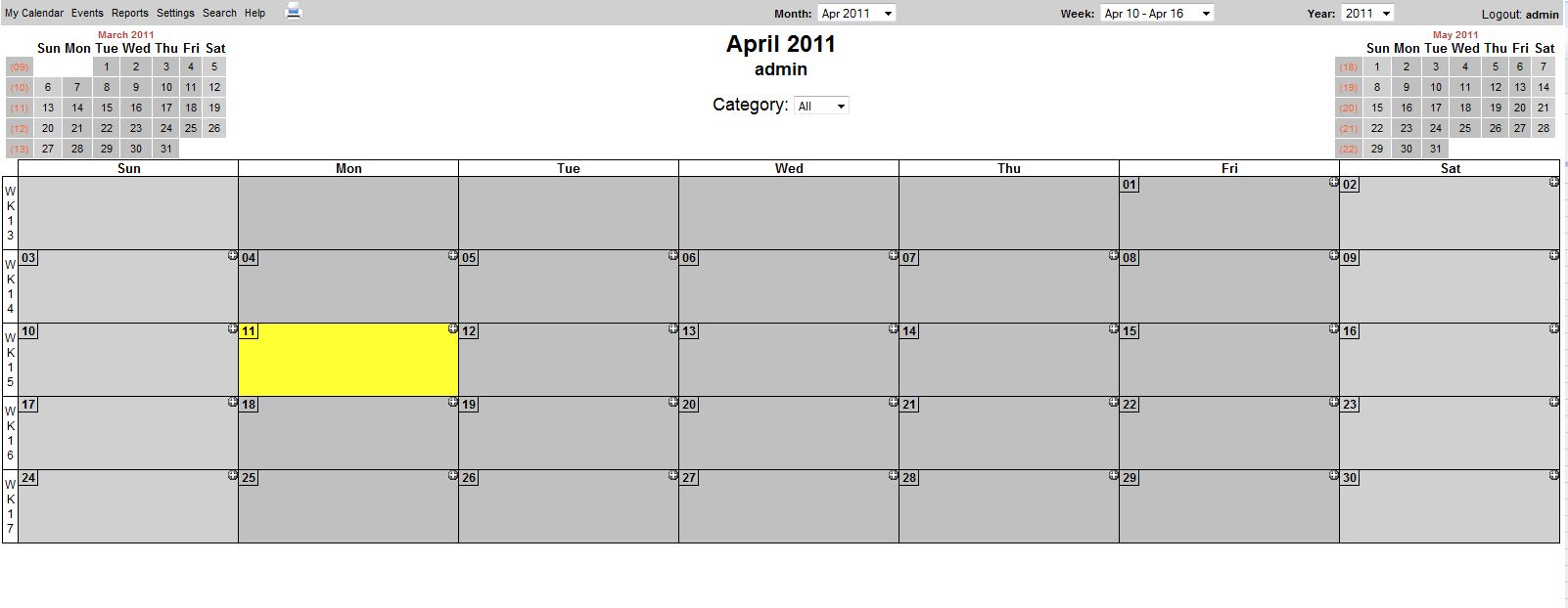 When you visit the admin link, a login page will display. After you log in, you can now modify your new calendar! For more information on updating your calendar, please visit the official WebCalendar website.