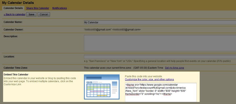 To share your Calendar, copy and paste all the code in the "Embedded Code" section into your site where you would like the calendar displayed.