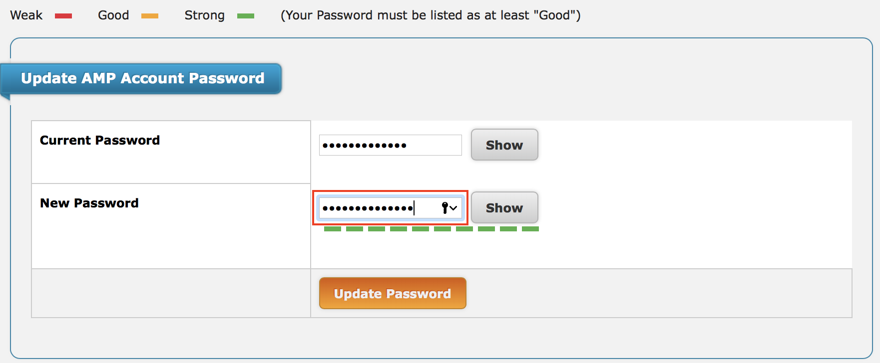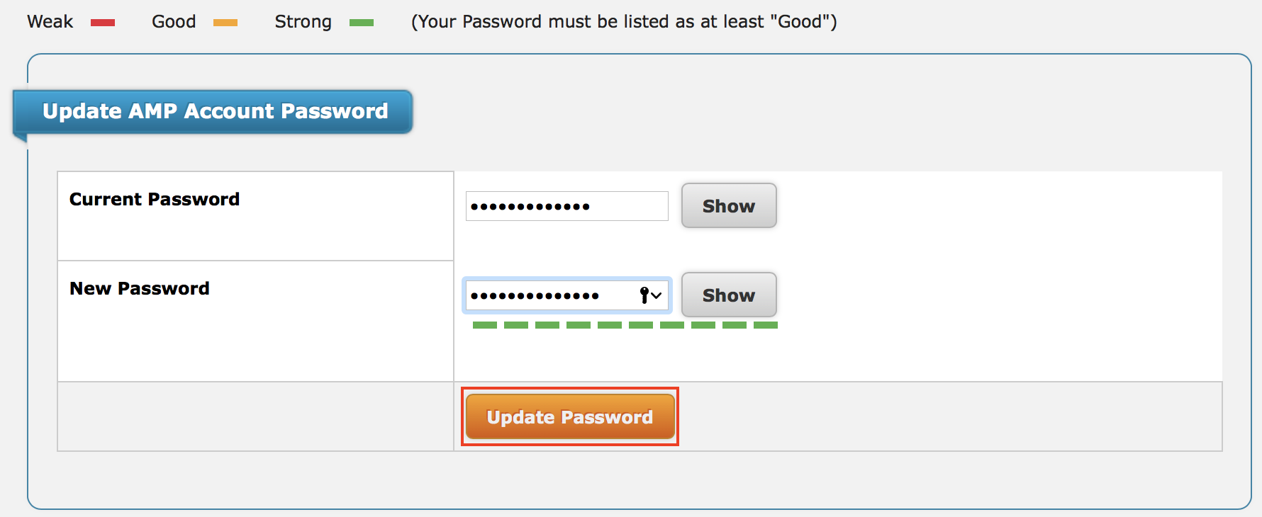 The Account Management Panel (AMP) is where you can manage your Web Hosting Hub account billing and contact information, as well as access your cPanel. Resetting your AMP password is easy, once you are logged in. In this guide, you will learn how to change your AMP password through the AMP interface.