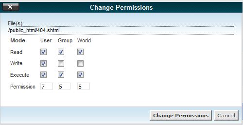 Once you have put in the new permissions, click Change Permissions. Remember that you should only do this if completely necessary! If you allow more access to your files, it can leave your website vulnerable. If you have any questions, contact our Tech Support and we'll be happy to assist you.