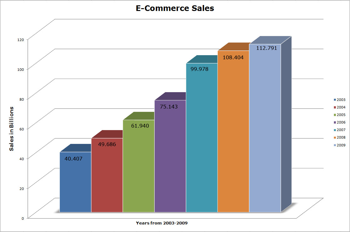 As online sales increase, people are purchasing more digital items that can be downloaded such as ebooks, music, videos, or software. E-commerce sales in general have increased from $40.4B in 2003 to over $112B in 2009, according to the