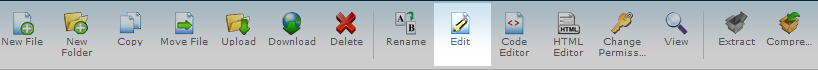 - Now that you are in the root folder for the domain, locate the .htaccess file. If there is not one for the domain, you will need to create a new one. Once created or found, edit the file by highlighting the it and clicking on the Edit icon from the toolbar at the top of the page.