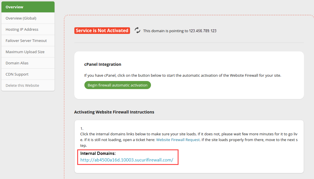 Check the provided Internal Domains link to verify your site is displaying correctly.