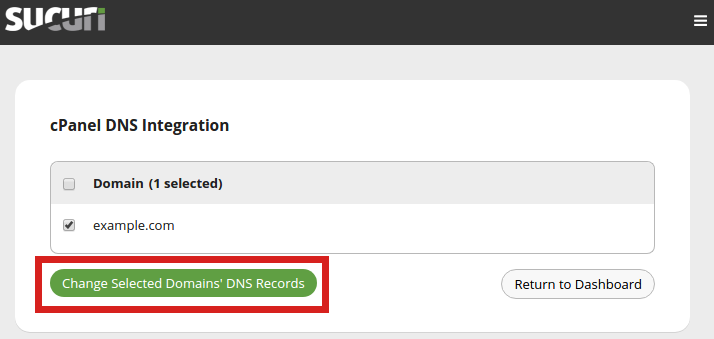 Select your domain on the cPanel DNS Integration page, then click the Change Selected Domains DNS Records button.