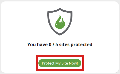 You should then see message stating "You have 0 / 5 sites protected" (this number may differ based on your setup). Click the Protect My Site Now button.