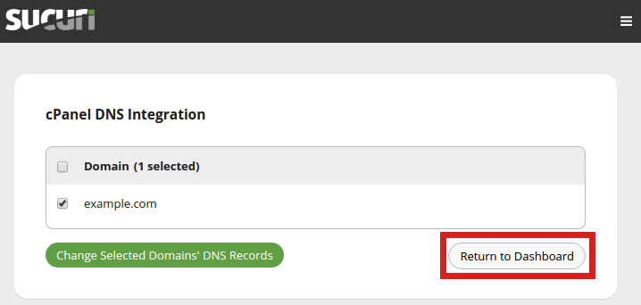 You will then be back on the cPanel DNS Integration page. Click the Return to Dashboard link.