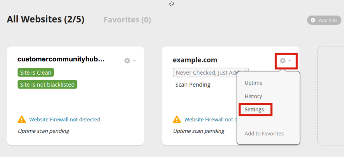You will then see the websites you have already added. Click the drop-down menu, then click the Settings link.