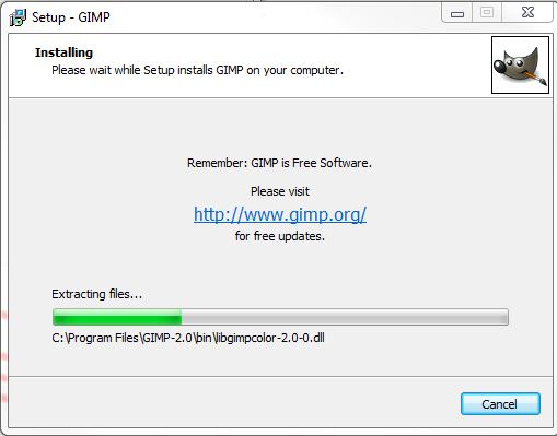 When the program opens, click on Install and GIMP will immediately begin installing to your computer. You will get a screen similar to this: