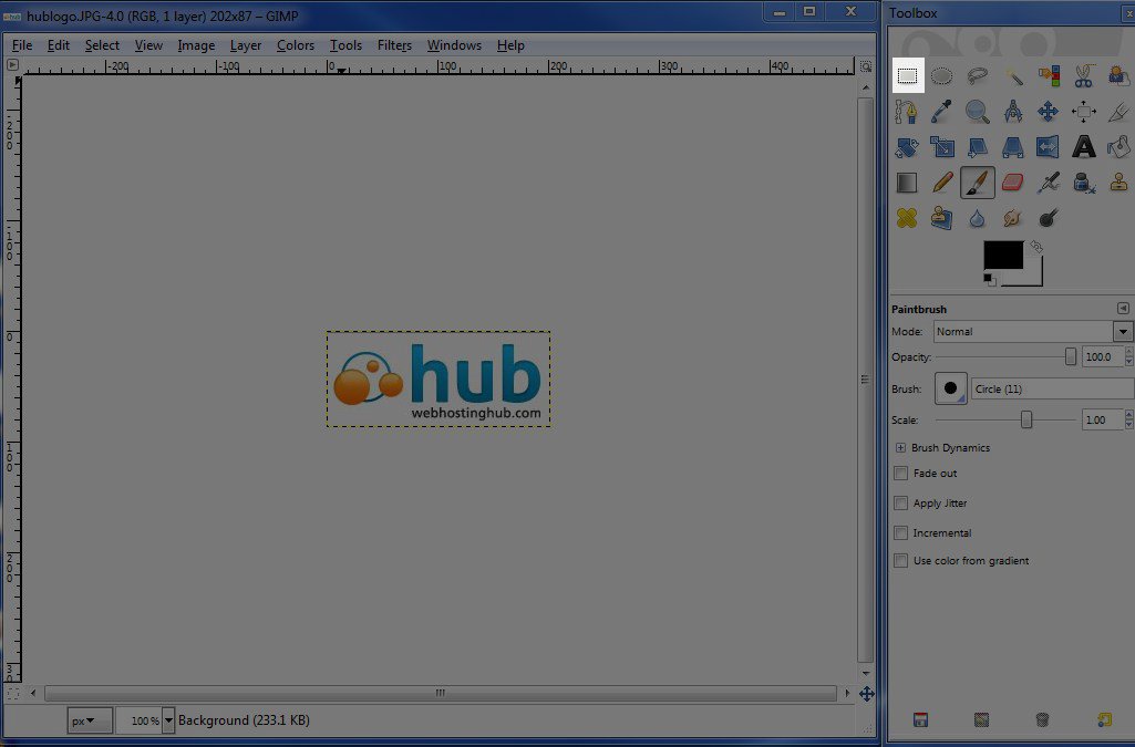 This will allow you to make a box around the part of your image that you want to keep. In this example, we click and drag to make a box around the left side of the Web Hosting Hub logo. Once the box is made, release the mouse and a dotted box will be around the selection: