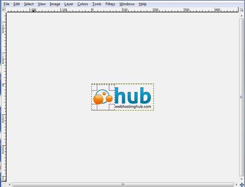 First, open GIMP and use File -> Open to open the image that you want to edit. In this example, we will edit the logo for Web Hosting Hub. When your image loads in GIMP, it will look similar to this: