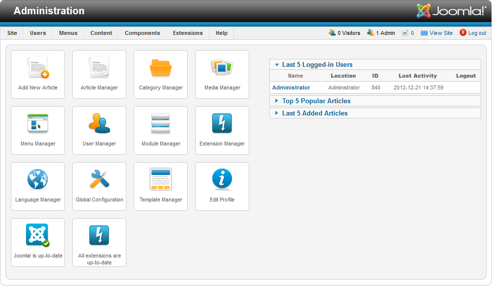 Congratulations, now you know how to login to the Admin Panel of Joomla!