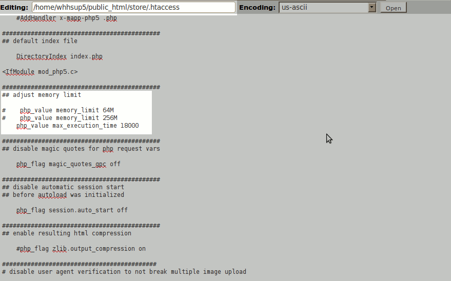 Within your File Manager, find the .htaccess file in your store directory. Right click on it and choose "Edit". Find this line:
