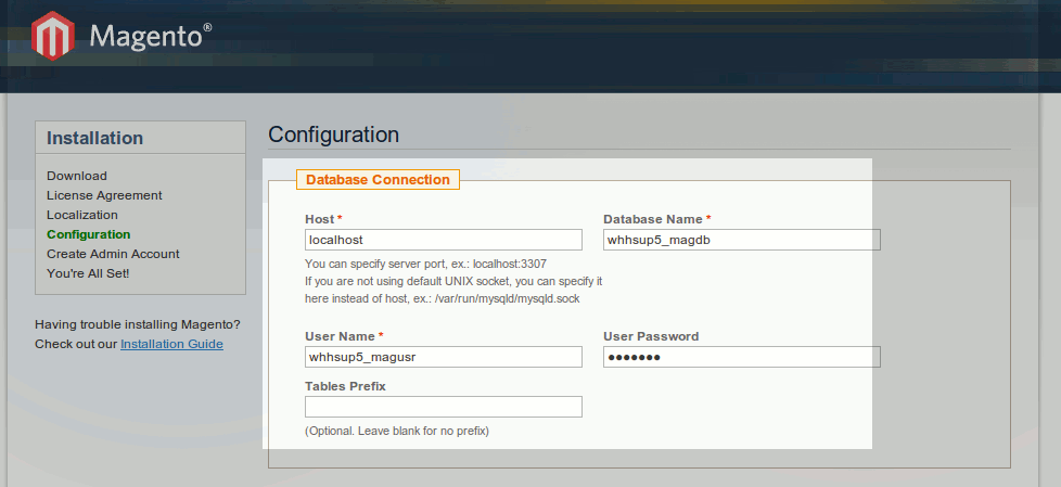 - Using cPanel's MySQL Database Wizard, setup a blank database for your new magento installation. We've created the following in which we'll use later in this tutorial: