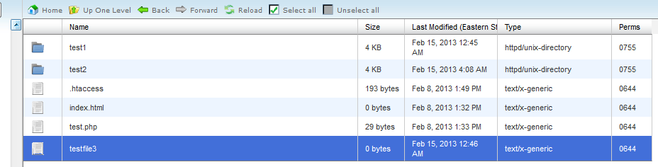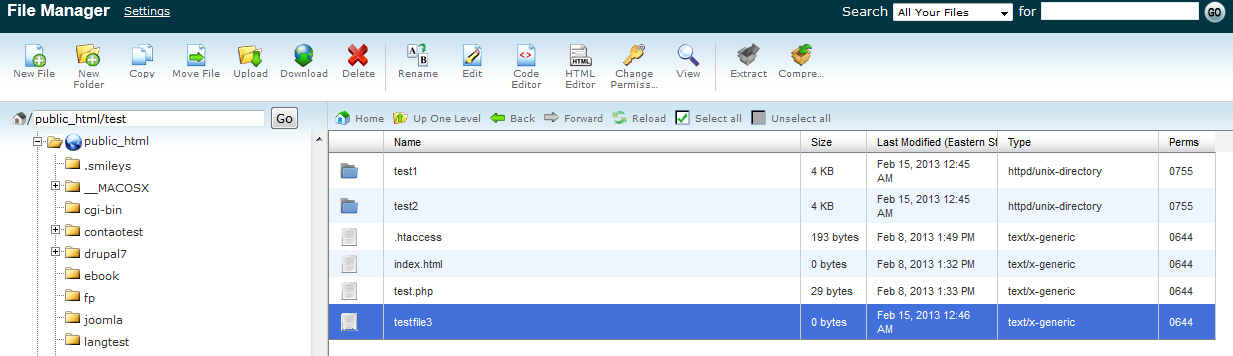 Those are the two quick ways to move files in The Cpanel File Manager. Here's a before and after look at the move a file into another directory: