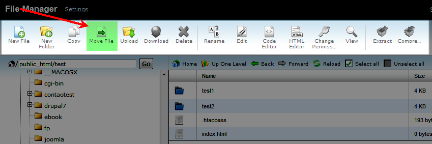 - Click on the icon labeled MOVE FILE in the top of the File Manager.