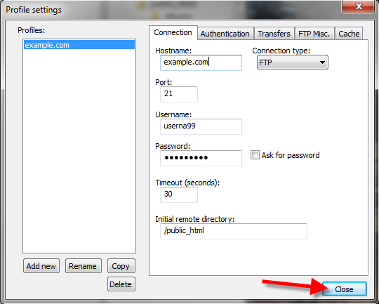 | Initial remote directory | /public_html |