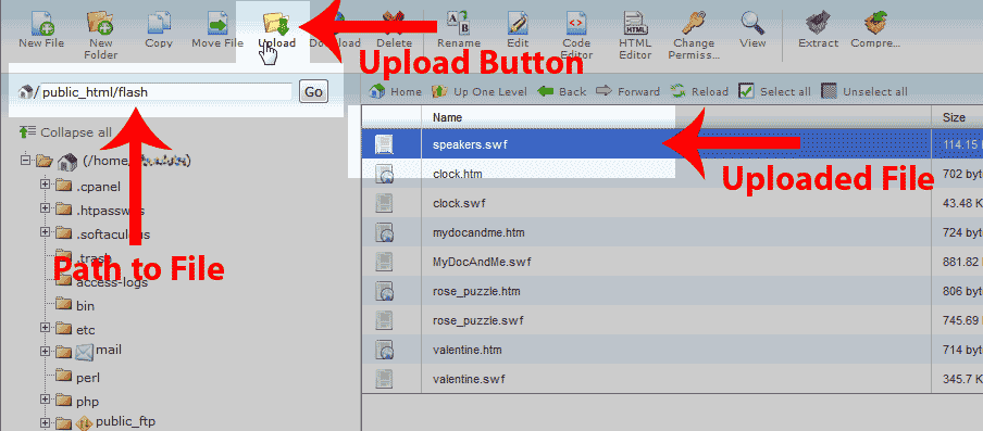 Go to the directory you want to store your flash .swf file in. In this example, we are creating a flash folder in the builder site directory and upload your .swf to that location.