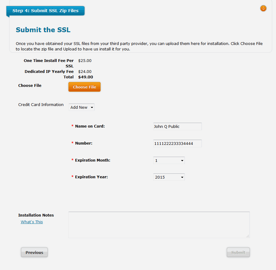 Now that you have the SSL files, you can upload them here. Also, fill out the billing information so our team can install the new SSL onto your site.NOTE: