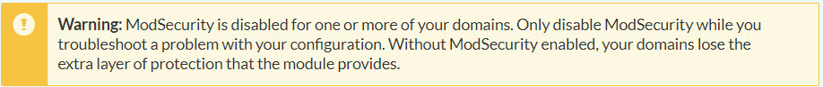 ModSecurity is server software for Apache that comes bundled with cPanel. ModSecurity helps protect your site from brute force attacks and, by default, automatically runs on all accounts. ModSecurity should usually remain on. In certain situations, such as a WordPress admin lockdown caused by brute force attacks, you may need to temporarily deactivate ModSecurity to resolve an issue. The below steps show how to disable ModSecurity in cPanel.