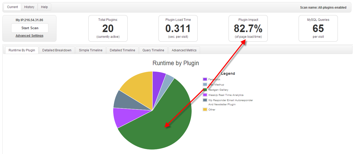 Here we can see the Nextgen Gallery is our highest usage plugin, and our plugins account for 82.7% of our total site usage.