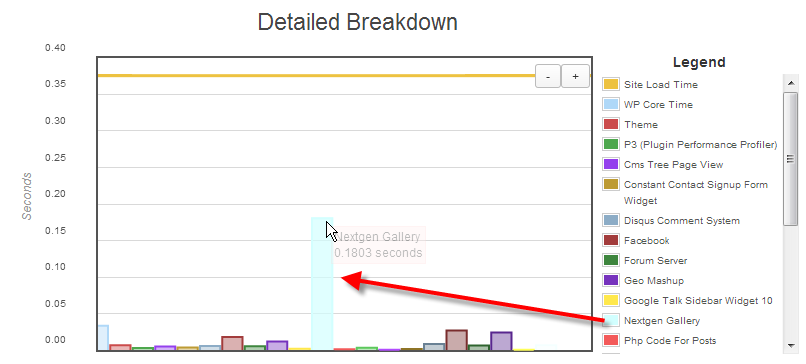 If you click on the Detailed Breakdown tab, you can see even clearer which plugin is taking the majority of the load time.
