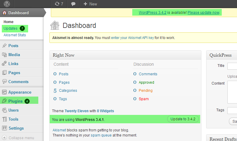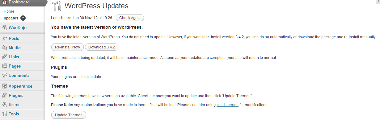 Wordpress is an extremely popular program for building websites. Due to its popularity, the development community is constantly pushing an upgrade to handle new functionality, bug fixes, and security patches. As part of their efforts to make it easier to upgrade Wordpress, the Wordpress administrator automatically detects when an upgrade is available. The Wordpress developers have made the upgrade through Wordpress as easy as clicking on a button. When you are upgrading you should take into account your plugins and themes, but if they are holding you back from a critical security upgrade it is highly recommended that you contact their developer so that you can upgrade your version as soon as possible. Security upgrades can mean the difference between a hacked site and a working site. The following article explains how to identify and then upgrade using the Wordpress interface.