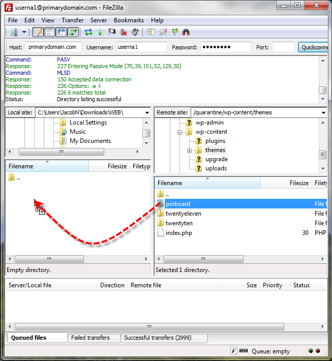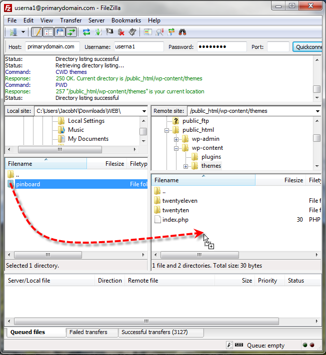 Now select and drag your custom theme folder to your local computer, here we used pinboard.