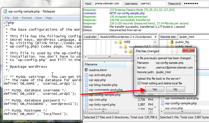 Now rename the file to just wp-config.php.