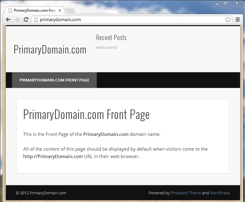 In the following example we're using a dummy website called PrimaryDomain.com. We noticed this site was hacked because it wouldn't load properly so we're going to reinstall WordPress and have it connect to our previous installation's database.