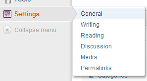 Once in the admin dashboard, you will see a menu on the left hand site. Hover over the Settings option, then click on the General tag.