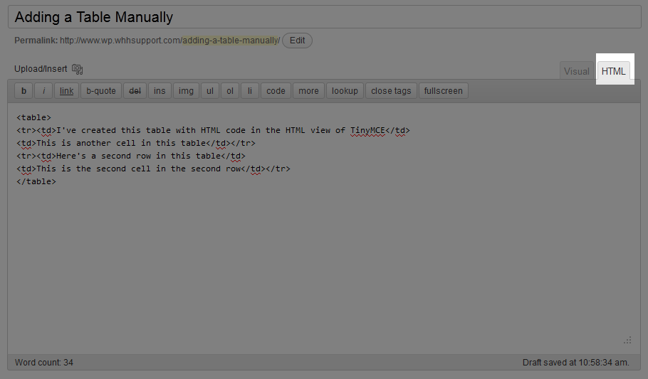 If you would like to learn more about adding tables using HTML, please see our article The Basics of Creating a Table.