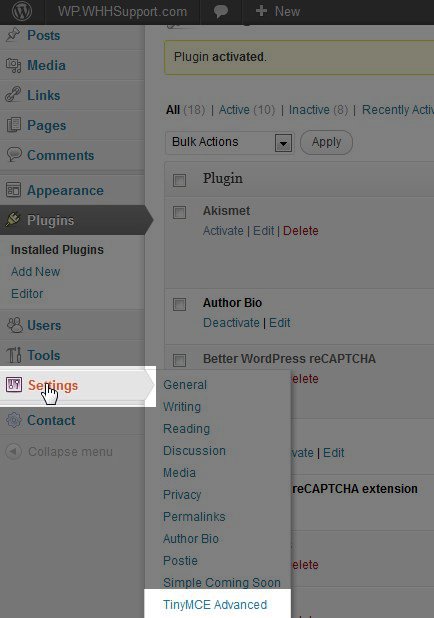 The TinyMCE Advanced Plugin will allow you to add additional toolbars to your TinyMCE editor in WordPress. The editor you see when creating or editing Posts and Pages in WordPress is called the TinyMCE. While the TinyMCE Advanced plugin can be used to add 16 plugins to your TinyMCE editor, for the purposes of this article, we will be focusing on adding tables. For a full list of the features the TinyMCE Advanced plugin provides, pleasee see: http://www.laptoptips.ca/projects/tinymce-advanced/