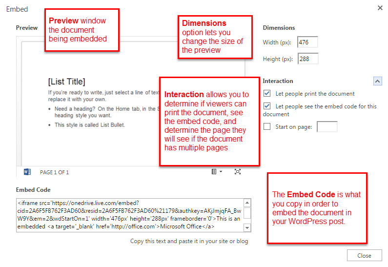 That completes the process for embedding a Microsoft OneDrive document into your WordPress Post or Page. Note that you can use the HTML embed code on other pages where HTML is able to be parsed.