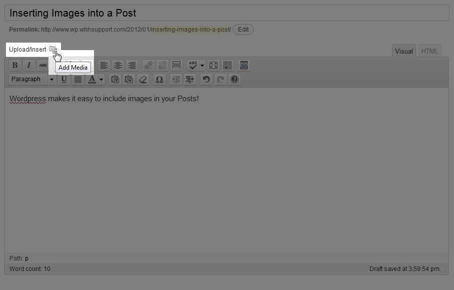 This will bring up the Add Media window showing three options for adding an image to your Post or Page: