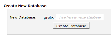 - Click in the field to create a new database and give the database a name. As per the screenshot below, note that there is a prefix that precedes the name. The prefix will always precede the database name.