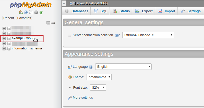Click on the database you are using for the website. If you do not know the name of the database, open your wp-config.php file and view the MySQL settings, to determine the name.