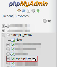 Click on the wp_options table.