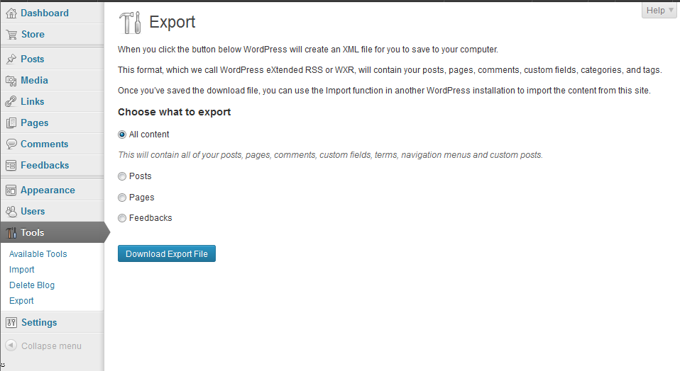 The first step is to get the data from your WordPress.com site. Understand that this will only migrate your posted data (posts and pages). Your theme, plugins, and widgets will not be included and will need to be re-uploaded to the new account. WordPress.com does not have a method to obtain the files that has that data.