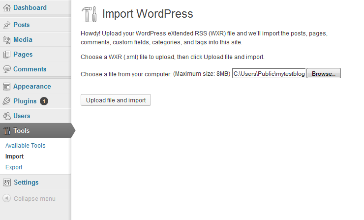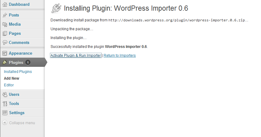 After the import you will be met with a completion message. Visit your site and ensure the posts and pages were transferred.