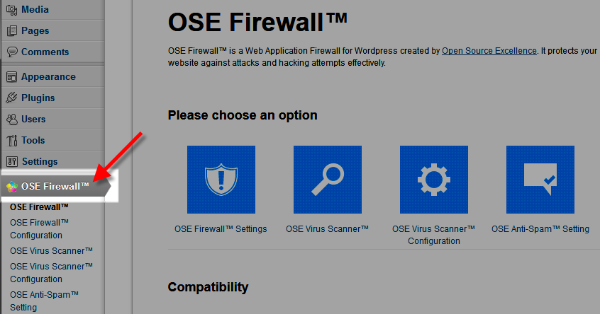 There are many Plugins available for protecting your Wordpress site from hacks or attacks, OSE Firewall™ is rated as 5 out of 5 stars. In this tutorial we will show you how to install the OSE Firewall™ plugin in Wordpress, then we will go over the basic settings.