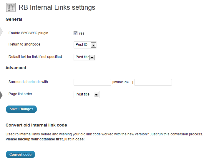 Make sure the "Enable WYSIWYG plugin" option is checked. You can also adjust the "Return to shortcode" and "Default text for link if not specified" settings. The first one doesn't affect how links appear on your site, just how you see them when adding the links in the WYSIWYG editor. Feel free to play around with the settings as you like.