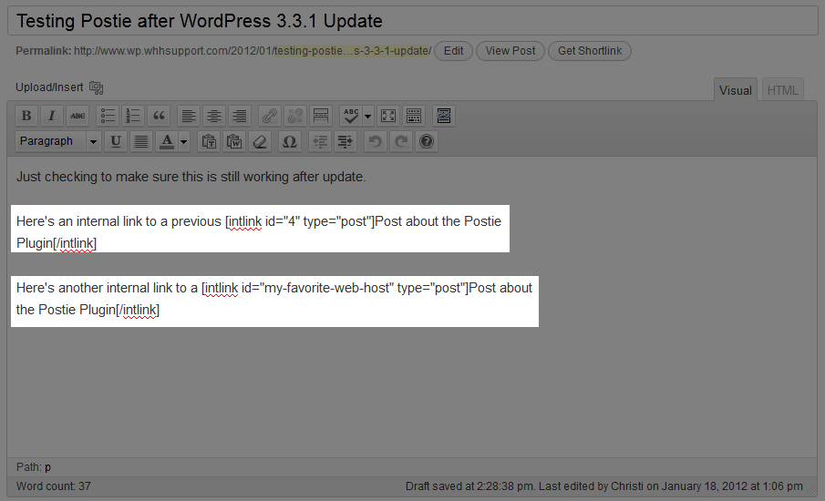Depending on whether you chose to pull the Post ID or Post slug (back in the RB Internal Links settings), you will see one of the following types of shortcode: