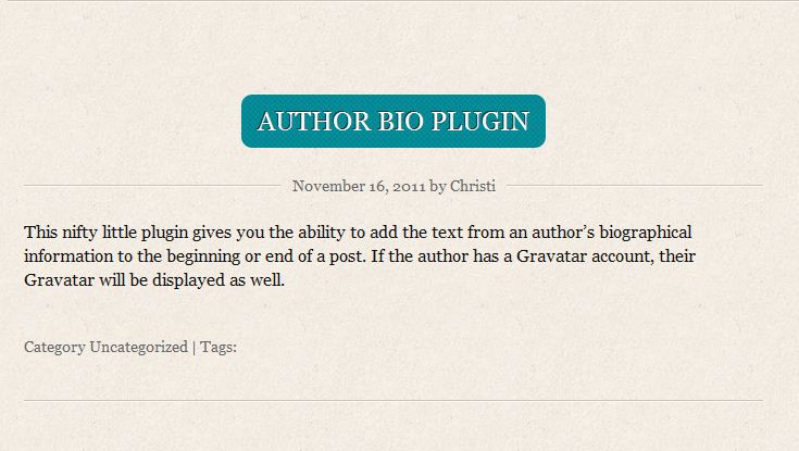 Adding an author biography is a great way to add personalization to your WordPress site. There are several plugins available that can add this functionality to your site. As an example, we'll use the Author Bio plugin we found in the plugins directory on the WordPress website. This particular plugin can even pull in the author's Gravatar (Globally Recognized Avatar) image.
