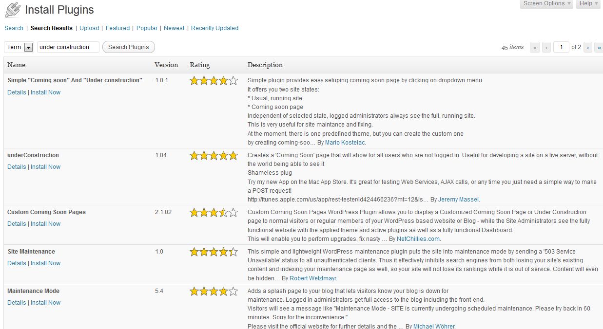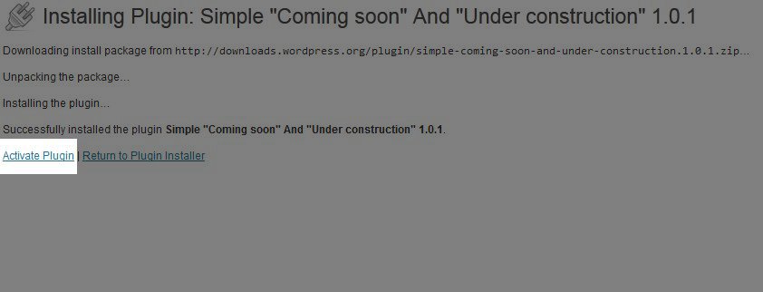 Before we start customizing our site with theme changes, content, images, etc. we'll find and install the plugin named Simple "Coming soon" And "Under construction" (one of several such plugins available).