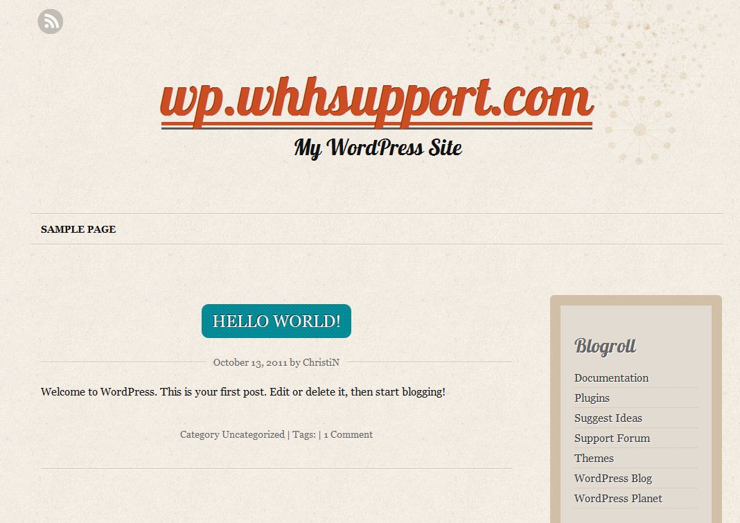At this point, we've already installed WordPress and we're logged into the WordPress dashboard. Here's what our fresh install of WordPress looks like: