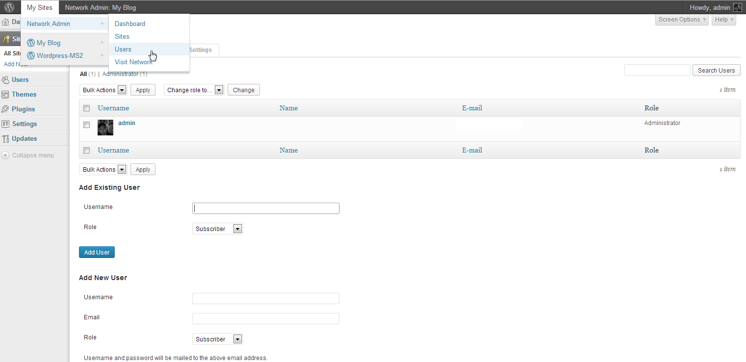 The user interface is almost similar with the main difference being that you have selected the add user interface specifically for a networked Wordpress installation. For more information on managing MS Wordpress installs, go to the Wordpress education channel.